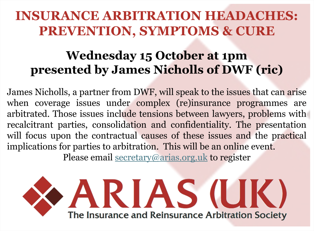 ARIAS (UK) held a half day conference (in person & online), followed by the AGM, from 9am to 2pm including lunch, on Thursday 19 June 2025 at the offices of Bryan Cave Leighton Paisner LLP, Governors House, 5 Laurence Pountney Hill, EC4R 0BR.